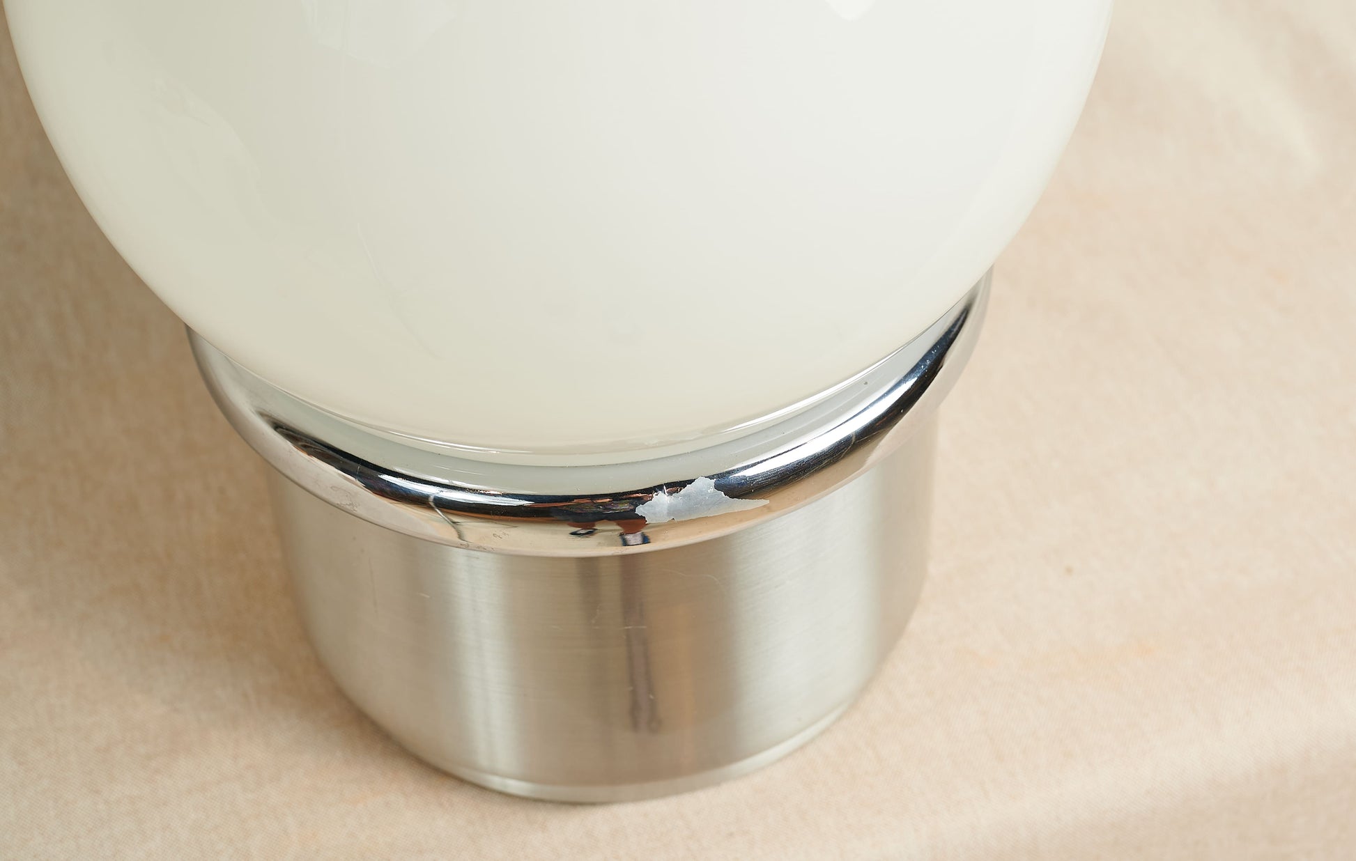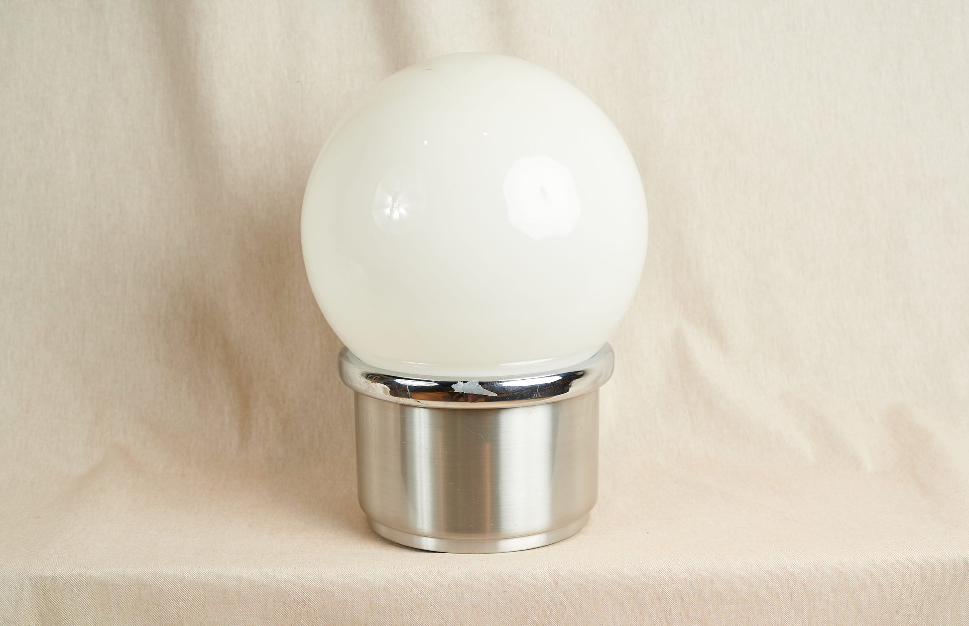 Lámpara de mesa con base metálica y tulipa esférica de cristal opalino